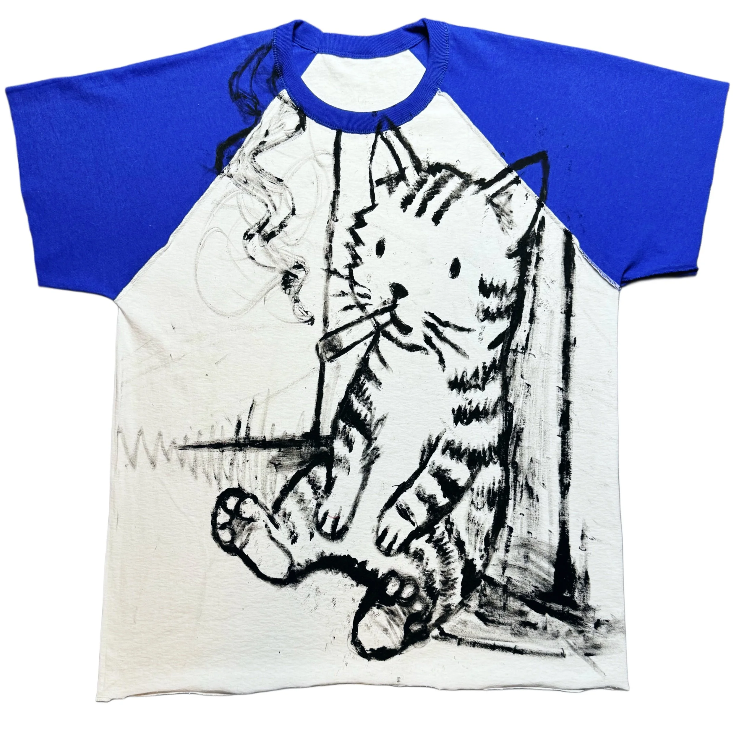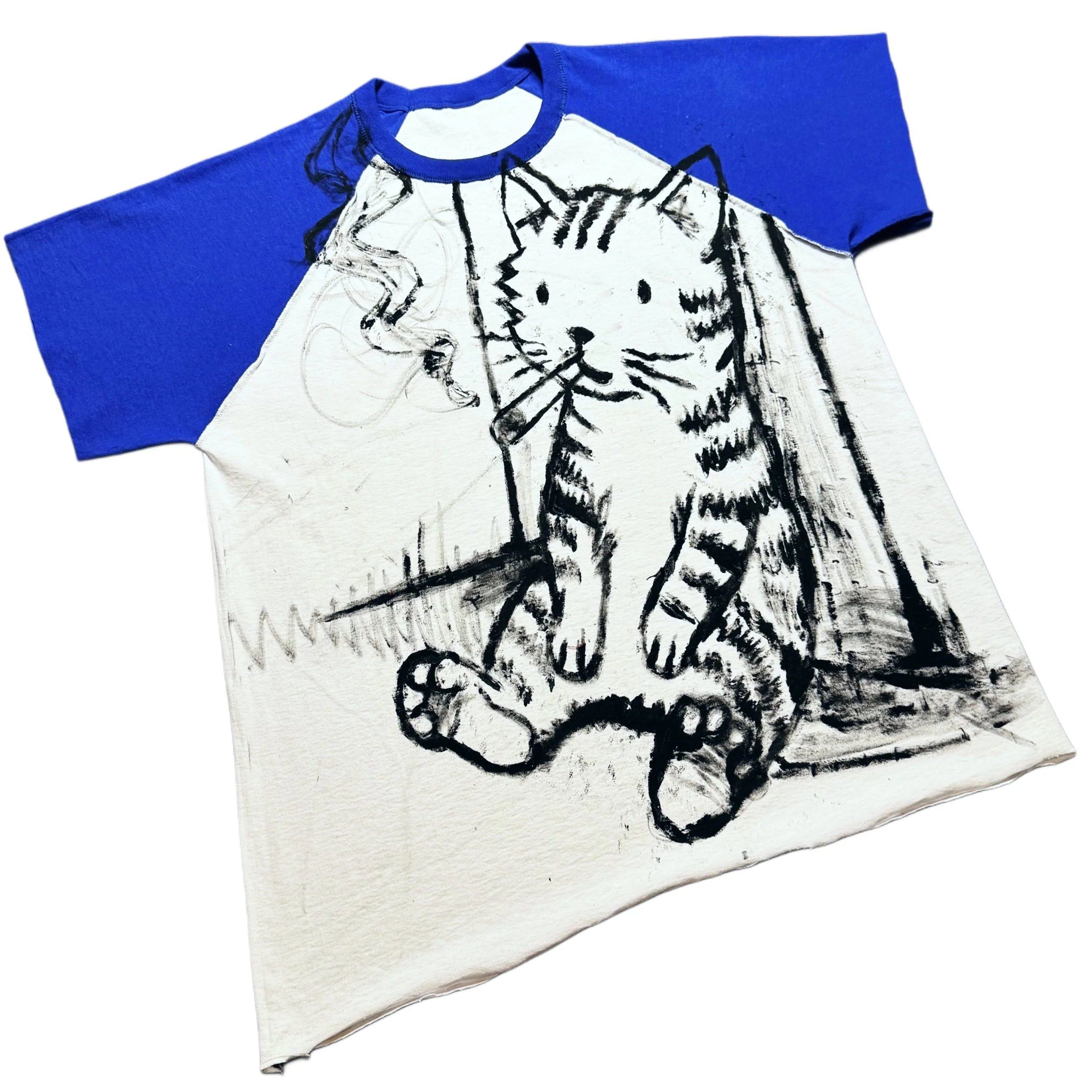 6.0 oz. material made from 100% USA Cotton. Features a classic contrast raglan short sleeve with a comfortable relaxed fit. Raw edges and a cut off bottom hem.