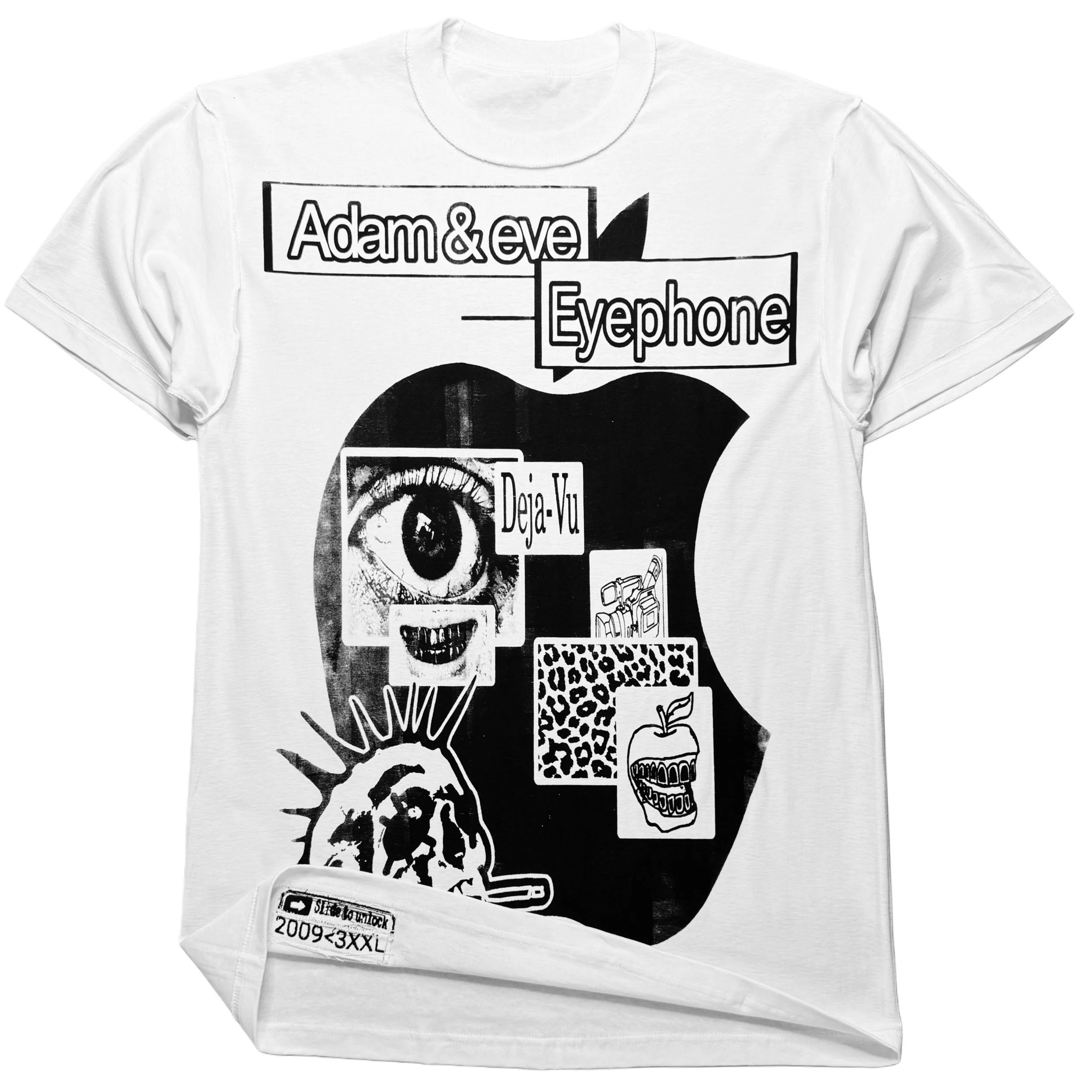 Fell like this happen already? Deja-vu! Got this graphic off 1 of my eyephones. Printed it on both sides. Features a bitten apple and images that reflect a humans life.